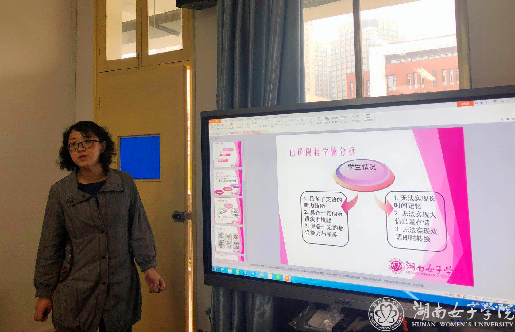 本次“四说”汇报分为教研室主任“说教研室”和专业教师“说课程”两个部分。共有4个教研室(商务英语教研室、英语教育教研室、英语教研室、大学英语教研室)和8名专业教师参加。系部主任、副主任、教研室主任、系部督导及相关教师到现场进行观摩。